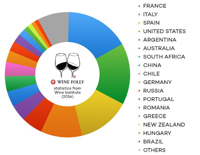 2015年,中國(guó)排名第八。目前,它是增長(zhǎng)最快的葡萄酒國(guó)家之一,主要生產(chǎn)干紅葡萄酒,包括赤霞珠和波爾多風(fēng)格的混合酒。