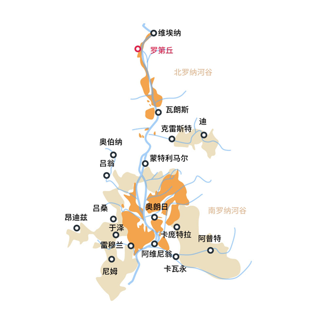 羅第丘以釀造優質西拉紅葡萄酒被眾多葡萄酒愛好者熟知,該產區的葡萄酒結構精細,風格優雅,將西拉的復雜芳香與當地的典型風土完美地結合在一起。