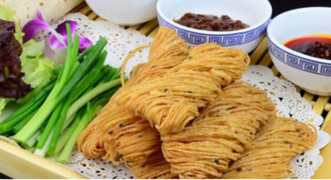 馓子,一種油炸面食,古稱“寒具”。許多地方便在寒食節(jié)中創(chuàng)造出各式的“寒食”,歷經(jīng)數(shù)代沿承至今,成了一道道獨(dú)特的清明時(shí)令小吃。