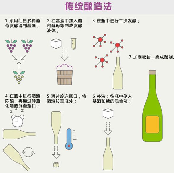 由于傳統釀造法最重細節,因此一般耗時最長、耗資也最多,不過采用這種方法釀造出的起泡酒一般口感復雜,氣泡細膩而又持久,還有精細的酵母風味,余味也更悠長,品質當然更優秀。