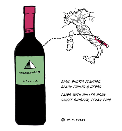 其實(shí),在意大利語(yǔ)中,“Negro”意為“黑色”,“Amaro”則意為“苦味”,可以想象,它的果皮顏色深邃且含有豐富的單寧。因此,重酒體的黑曼羅也經(jīng)常會(huì)與普里米蒂沃(Primitivo)進(jìn)行混釀,來(lái)降低單寧的厚重感,并增加諸如紅色水果的甜美香氣。