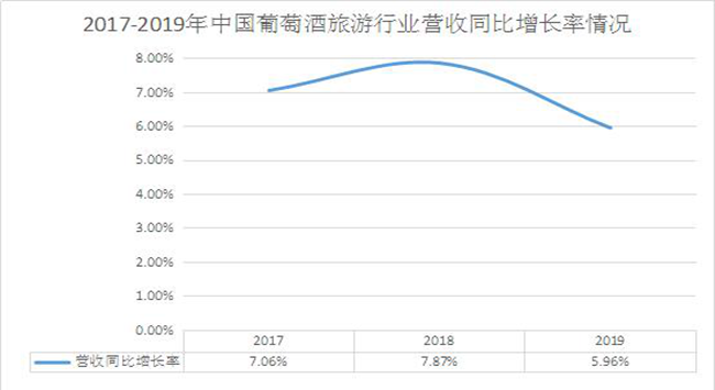 圖表:2017-2019年中國葡萄酒旅游行業營收同比增長率情況
