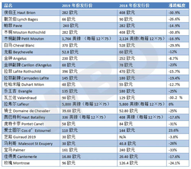 其次,此前幾年的期酒發行價呈上升趨勢,部分名莊酒連續幾年維持雙位數的漲幅。此次“降溫”,也是市場回歸理性的一種表現。事實上,WBO此前也報道過,波爾多名莊酒的熱度有所降低,部分名莊酒在終端市場的漲幅也趨于疲軟。