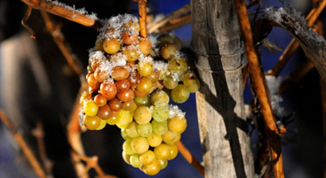 當(dāng)溫度越低,結(jié)冰后的葡萄果實(shí)的風(fēng)味濃度越高。在弗蘭肯產(chǎn)區(qū),11月30日,冰酒葡萄的采收溫度甚至降到零下12攝氏度!