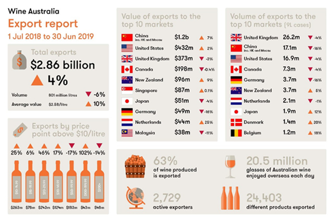 截至2019年6月底的12個(gè)月中,澳大利亞葡萄酒的出口總額增長(zhǎng)了4%至28.6億澳元。其中,對(duì)中國(guó)市場(chǎng)的出口額持續(xù)增長(zhǎng)7%,創(chuàng)下12億澳幣新高。